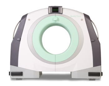 Known as the BodyTom, the battery operated, mobile intra-operative 32-slice CT scanner provides surgeons with new capabilities during procedures. The BodyTom allows imaging to be performed in the operating room, reducing the need to transport patients to and from traditional fixed CT scanners. Images of bone, soft tissue and tumours are acquired in the exact operative position and are used for critical decision making during surgery.